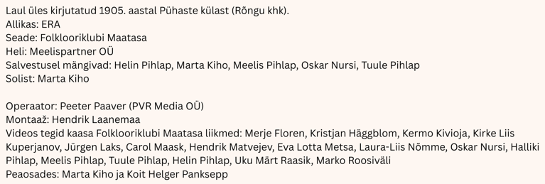 Hingedepäeva puhul avaldame muusikavideo loole “Mina, kurblik neiu”, mis põhineb Toomkiriku võtmetekandja legendil – toomkiriku valmimiseks tuli leida võtmetekandjaks noor neiu, kes elusalt kiriku seinte sisse müürida. Video esilinastus IX Tartu Folgi lõppkontserdil, mis oli pühendatud kohapärimusele.